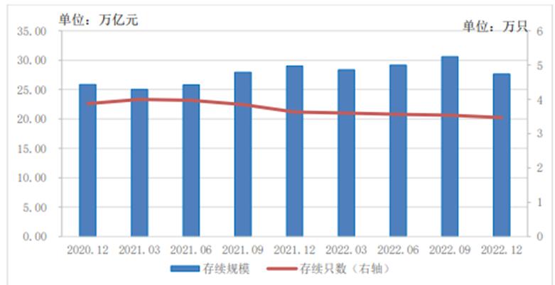 据银行业理财登记托管中心数据显示,截至2022年底,全市场共存续理财产品3.47万只,较年初下降4.41%,存续规模27.65万亿元,较年初下降4.66%。